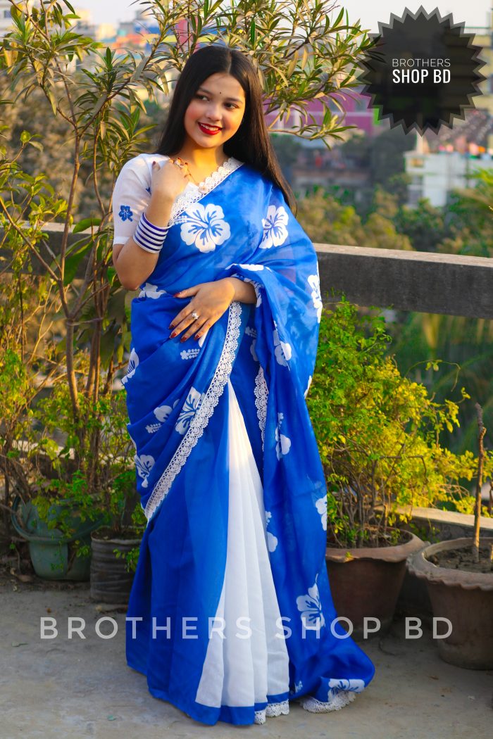 নীল জবা শাড়ি ব্লাউজ পিস সহ🌺🌺